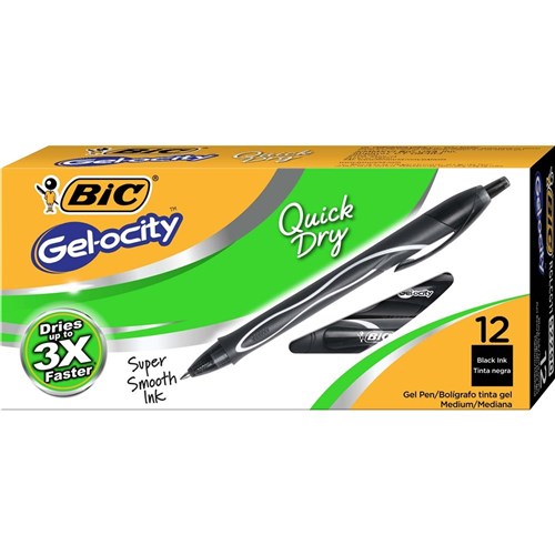 Bic Gelocity Gel Pen Retractable Medium 0.7mm Black Pack of 12