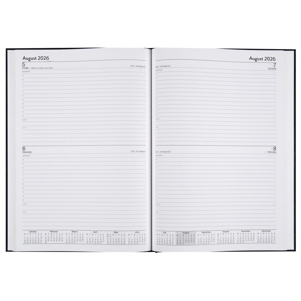 • Two days per page layout diary to keep track of appointments, meetings, and other important events.
