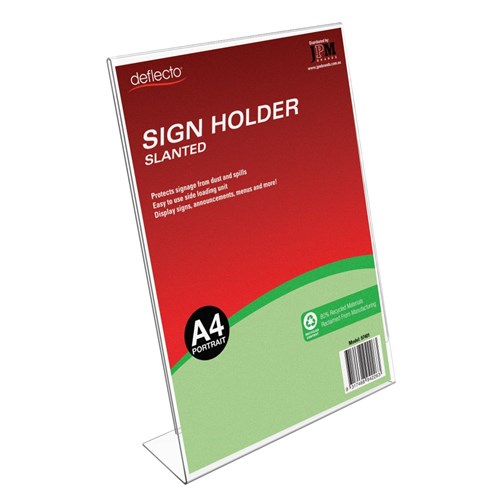 Deflecto Recycled Sign Holder Slanted A4 Portrait Clear