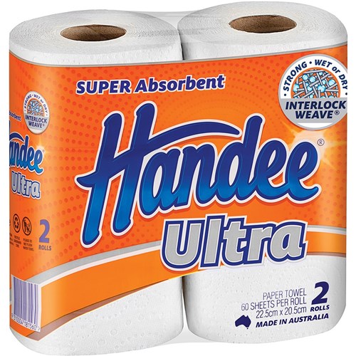 Handee Super Absorbent Ultra Kitchen Towel 2 Ply 60 Sheets Double Pack