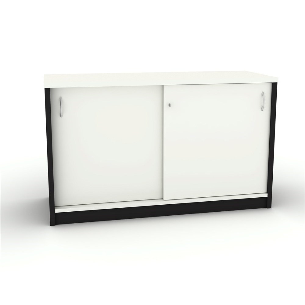 • OM Credenza 1200W x 450D x 720mmH Lockable Sliding Doors White And Charcoal