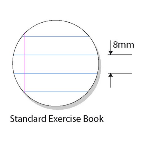 • 8mm ruled with red margin.
