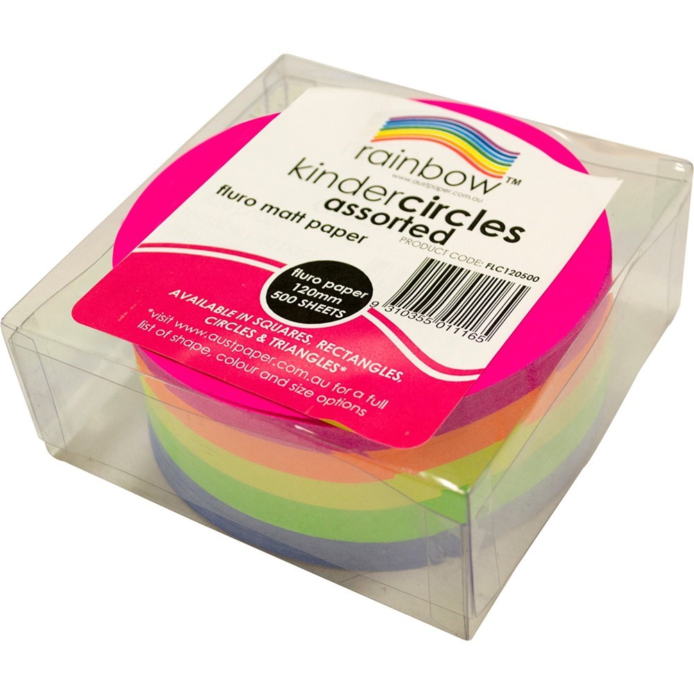 Rainbow Kinder Circles Fluro 120mm 80gsm Assorted Pack Of 500