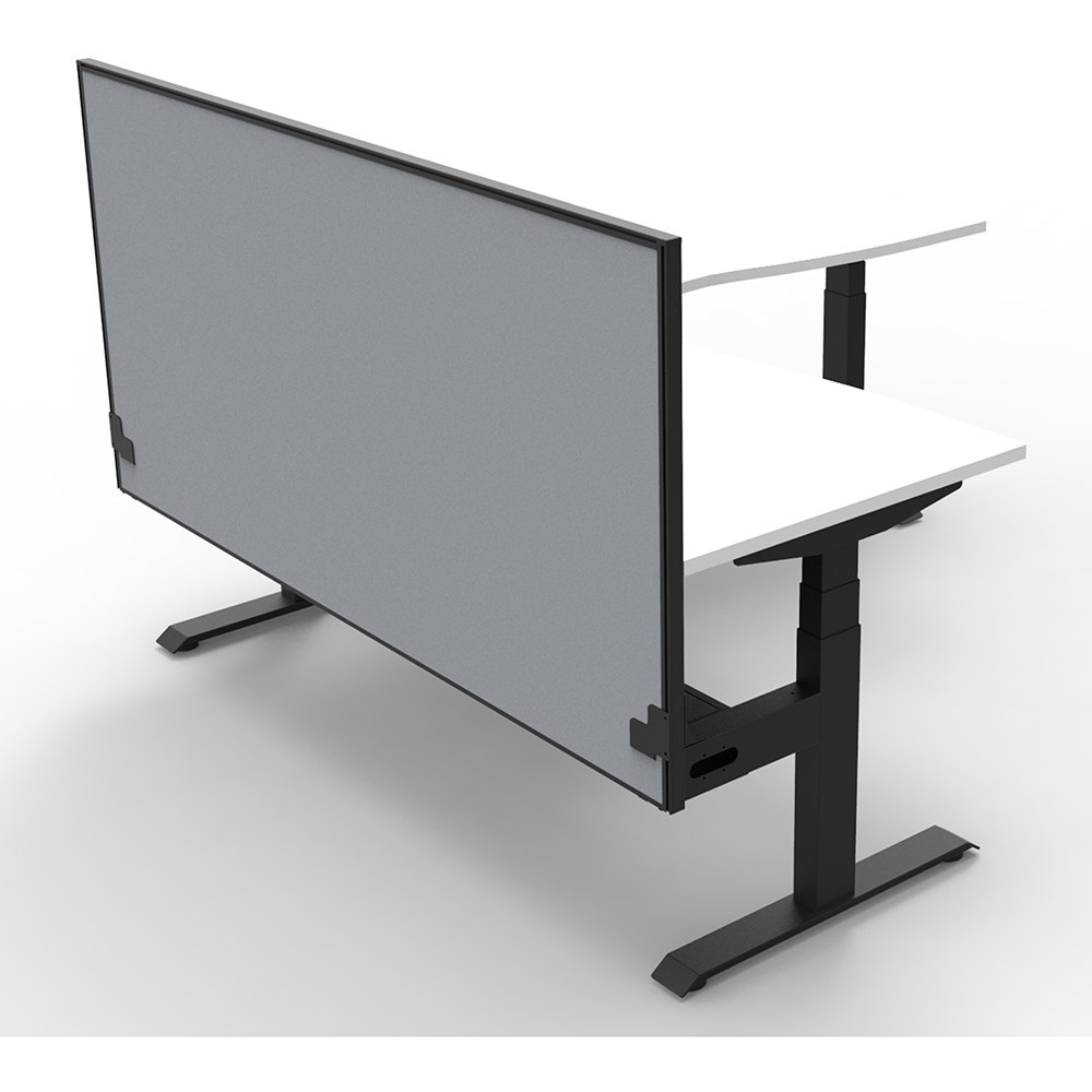 • Includes pinnable privacy screen in grey fabric with matching black powder coated frame. 900mm H x 30mm T.