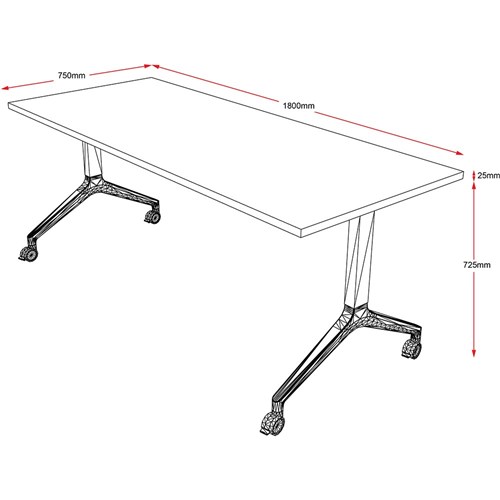 Rapidline Flip Top Table 1800W x 750D x 730mmH Cherry Top Silver Frame