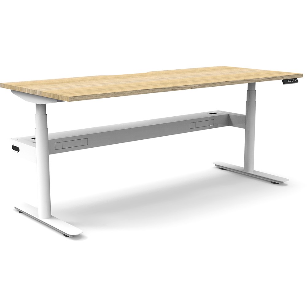 • 70mm diameter round column legs. 700mm wide foot size with adjustable leveling feet, return foot: 700mm. Comes with cable tray for cable management.