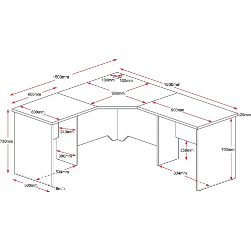 Rapidline Rapid Worker Corner Workstation 1800/1500W x 600D x 730mmH Oak And Ironstone