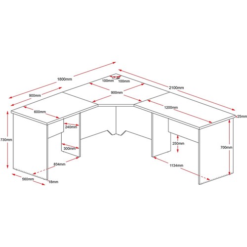 Rapidline Rapid Worker Corner Workstation 2100/1800W x 600D x 730mmH Oak And Ironstone