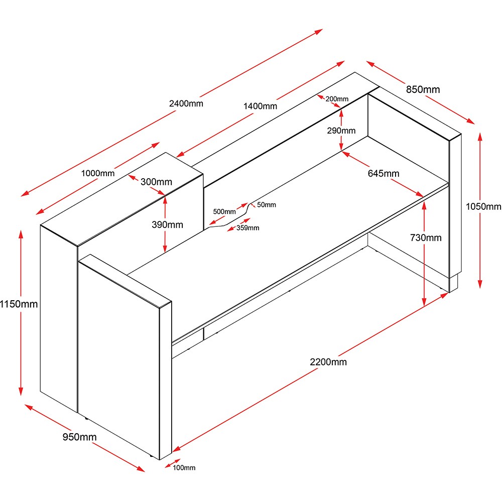 Rapidline Sempre Reception Counter 2400W x 950D x 1150mmH Natural Oak And Black
