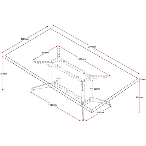 Rapidline Typhoon Boardroom Table 2400W x 1200D x 750mmH Oak Top Black Frame