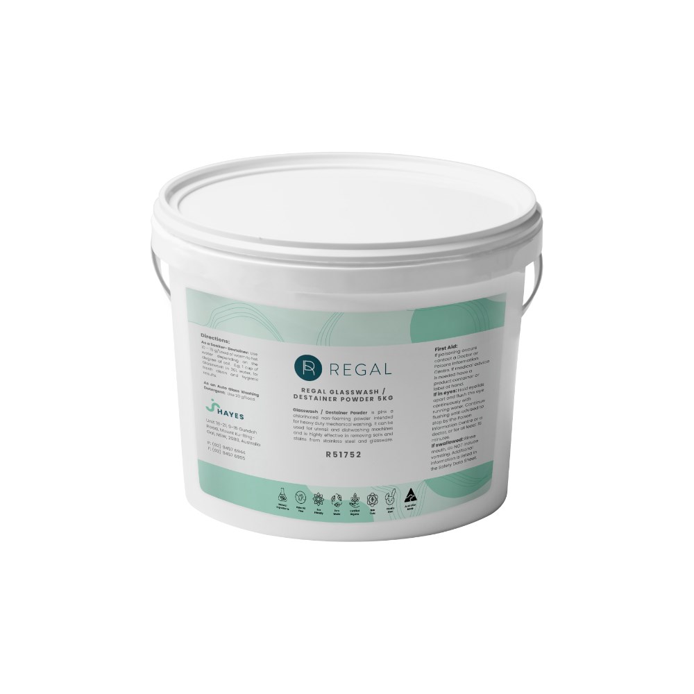 • Glasswash or destainer powder is pink a chlorinated non-foaming powder intended for heavy duty mechanical washing.