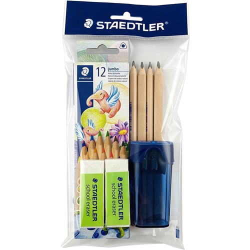 • Staedtler Jumbo School Kit (With Jumbo Natural Pencils And Jumbo Coloured Pencils)