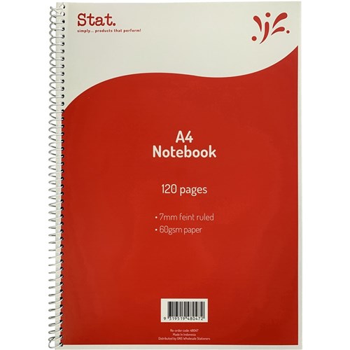Stat Notebook Spiral A4 7mm Ruled 60gsm 120 Page Red