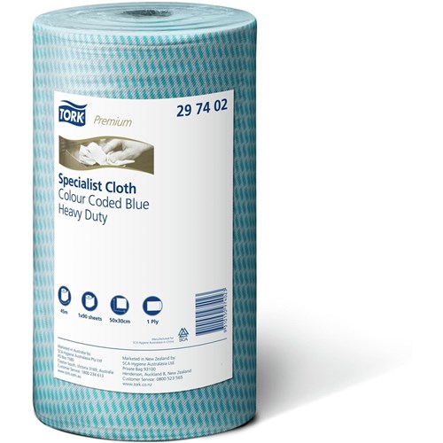 Tork Heavy Duty Cleaning Cloth Roll 45m 90 Sheets Blue Carton Of 4