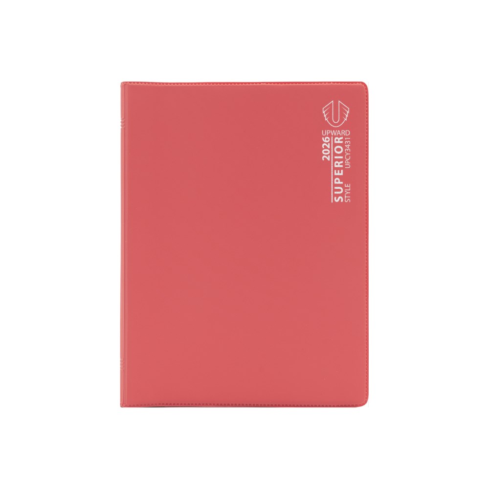 • Featuring a padded, phthalate free, PVC cover, pockets for storing business cards and wire-o binding to allow the diary to lie completely flat when open.