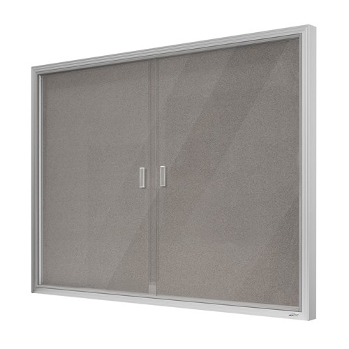 Visionchart Be Noticed Sliding 2 Door Notice Case 1800W x 48D x 1200mmH Silver/Grey Felt