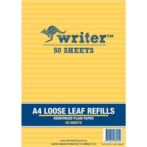 Writer Binder Refills A4 Plain Reinforced Pack of 50