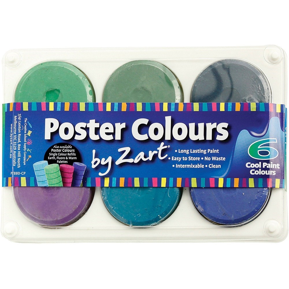 Zart Poster Colours Paint Assorted Cool Colours Pack of 6